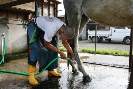朝6時半より厩舎の掃除から始まります。