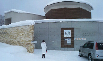今日から、北海道の美瑛にある榎木孝明水彩画館に出張できています。 寒さは、今日は幾分温かいらしく、大分とあまり変わらない気温でした。 しかし、一面白銀の世界ですごくきれいです☆ 大分の美術館も今日は雪だったみたいで、雪かきをした模様です。 写真は、美瑛の美術館の正面です